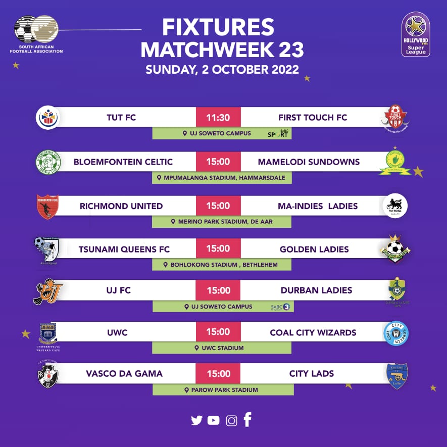 Defending champions, Mamelodi Sundowns Ladies and Bloemfontein Celtic Ladies headline week 23 of the Hollywoodbets Super League.