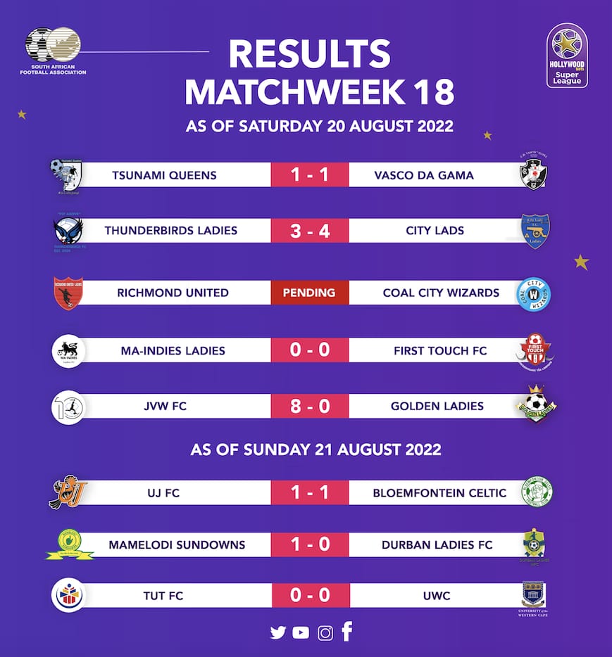 This was City Lads’ third win of the season in 17 matches, after 3 draws and 11 defeats – the result sees them move further away from the relegation zone as they occupy 13th position with 12 points, just one above fellow Hollywoodbets Super League debutants, Vasco da Gama who played to a 1-1 draw against the struggling Tsunami Queens.