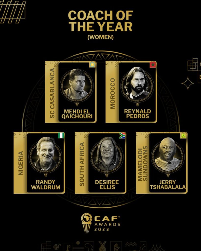 Head Coach of the South African Senior Women’s National team, Desiree Ellis is also in contention for the Coach of the Year – the only woman in the category among four other men, including Mamelodi Sundowns Ladies Coach Jerry Tshabalala.