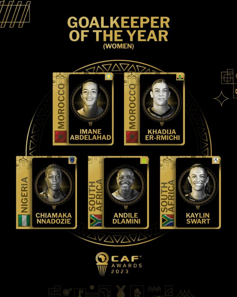Dlamini has also been nominated along with Kaylin Swart (South Africa, JVW) among the top safe hands in a group of five for the Goalkeeper of the Year.