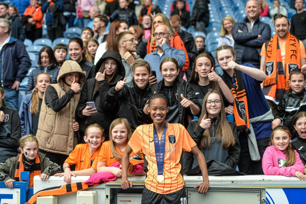 After 34 games and four goals to boot, the nimble-footed player left Petershill Park with a League Championship medal after making her debut in 2023.