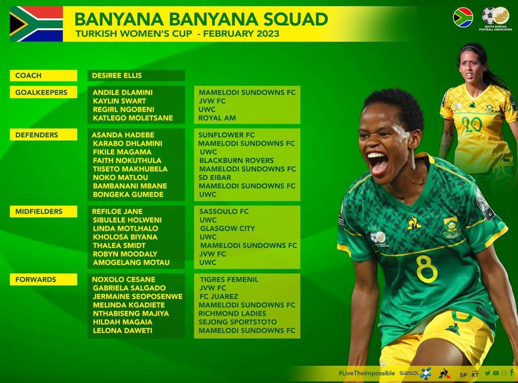 Banyana Banyana squad for the Turkish Women’s Cup