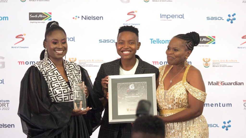 South Korea-based forward Hilda Magaia also won in absentia as she scooped the Public Choice Award – she scored a brace in the final of the 2022 Women’s Africa Cup of Nations in Morocco to help Banyana Banyana lift their maiden continental title.