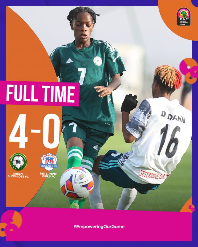 Green Buffaloes got their debut campaign off to a flying start as they swept past Determine Girls with a 4-0 victory in the opening match of the CAF Women’s Champions League, Morocco 2022 in Rabat on Sunday.