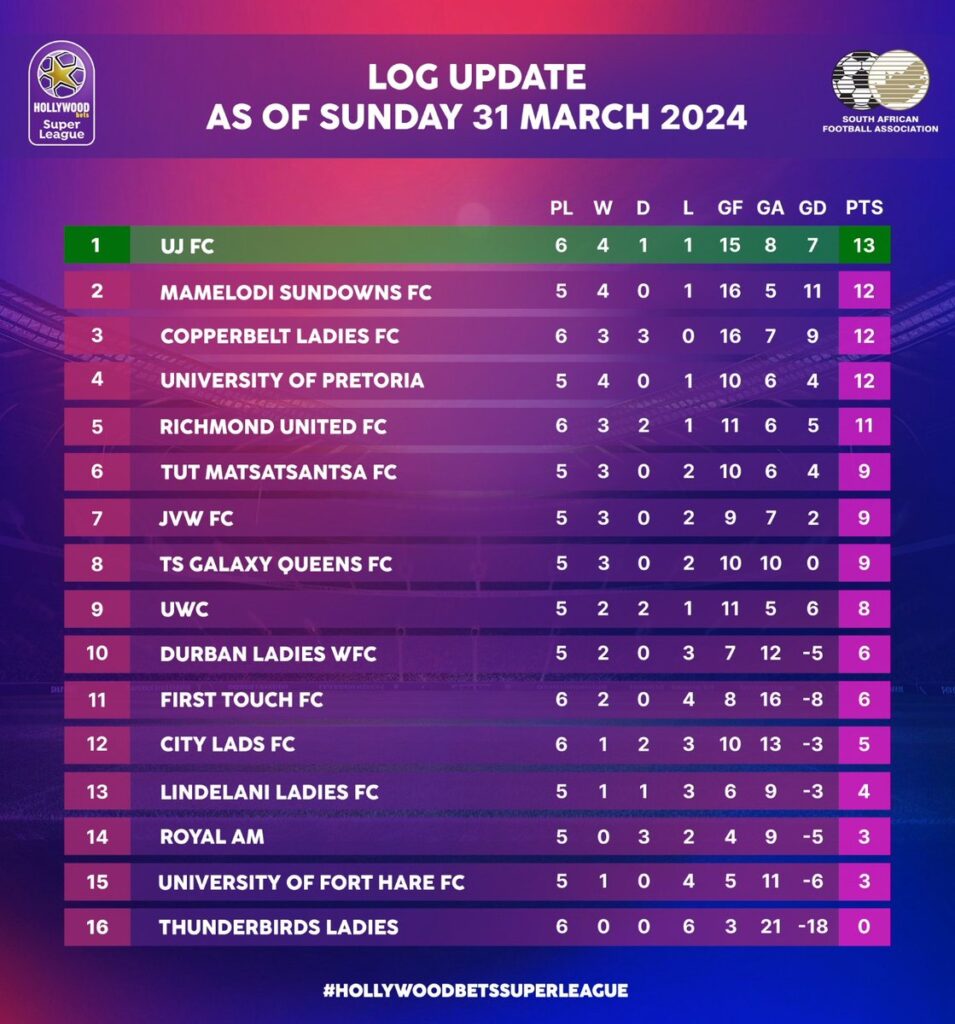 Only in their second year in the Hollywoodbets Super League, the Limpopo side has also scored 16 goals in six games, sharing the accolade with the reigning league champions, while UJ Ladies has netted one goal less.