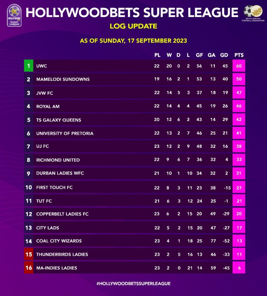 The victory however sees them on 60 points after 22 rounds of fixtures – three games more than second-placed Mamelodi Sundowns Ladies, whose match this past weekend vs Durban Ladies was called off due to safely concerns.