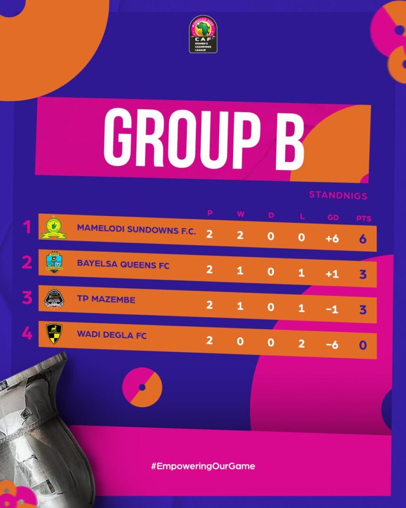 Boitumelo Rabale’s brace and a strike each from Lelona Daweti, Melinda Kagdiete and Bambanani Mbane ensured the South African champions zoom past the Egyptian queens and inch closer to a semi-final berth in the competition.