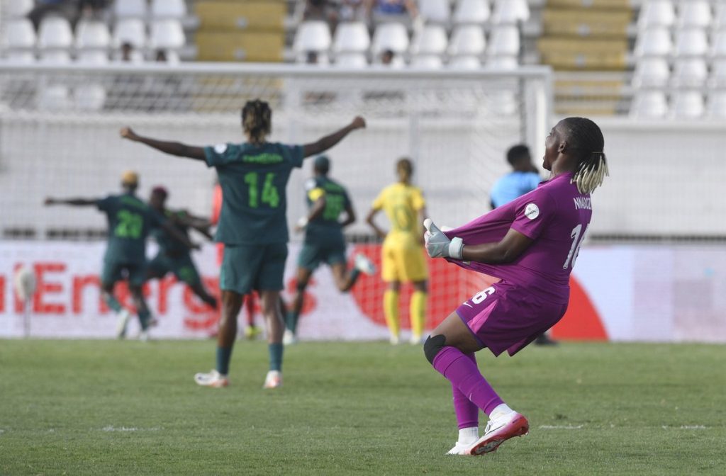 South Africa, the defending champions, came out fighting in the second half and were rewarded in the 60th minute when Hildah Magaia was brought down by Osinachi Ohale, leading to a penalty.