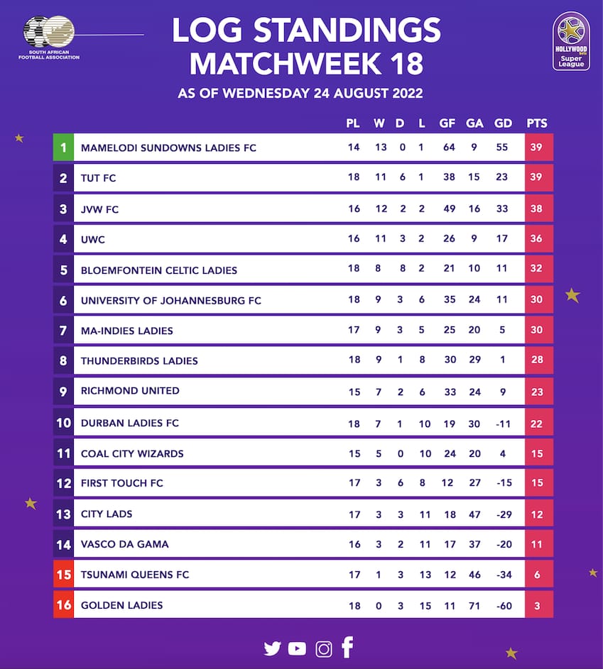 Mamelodi Sundowns Ladies are back at the top of the table in the Hollywoodbets Super League.