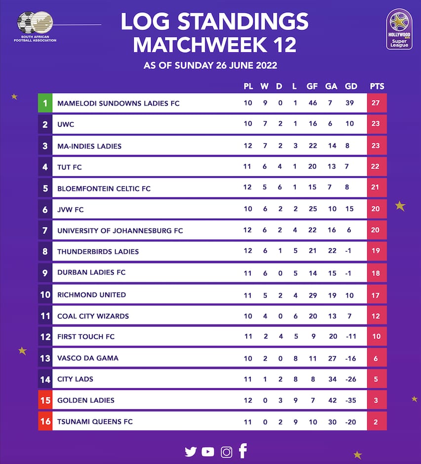 The Tshwane side is fourth with 22 points, while Tsunami has amassed two points from 11 outings.