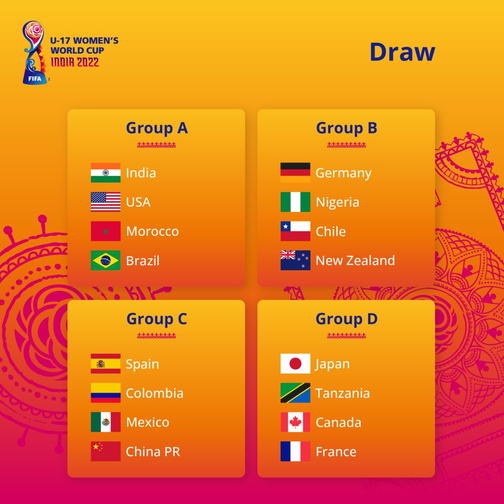 Nigeria will have to deal with Germany, New Zealand and Chile in Group B, while Morocco find themselves among powerhouses USA and Brazil and hosts India in Group A.